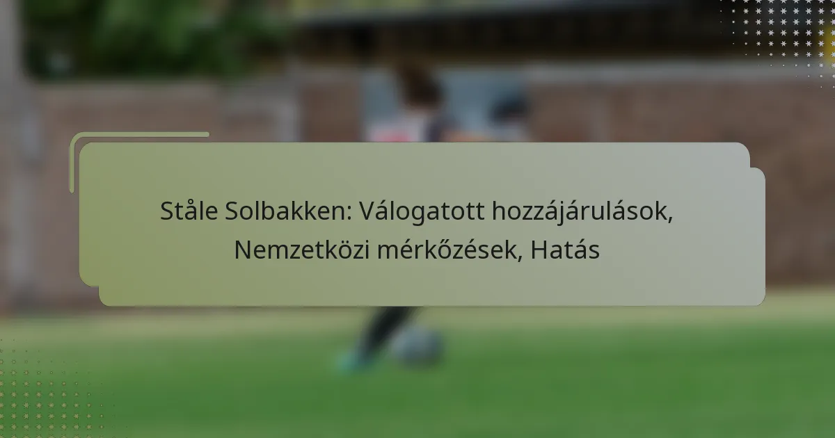Ståle Solbakken hozzájárulásai a válogatotthoz egy átmeneti időszakra nyúlnak vissza a norvég labdarúgásban. Debütálása olyan időszakra esett, amikor a csapat próbálta megerősíteni magát a nemzetközi színtéren, és jelenléte segített megszilárdítani ezt az alapot.